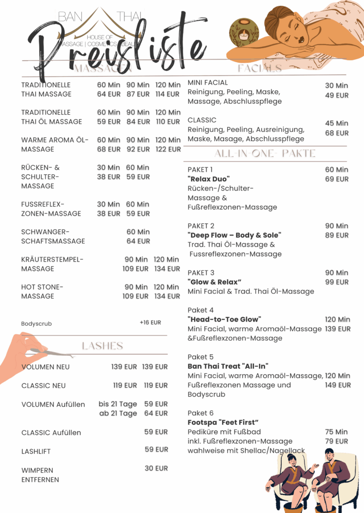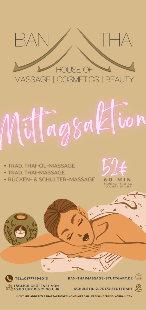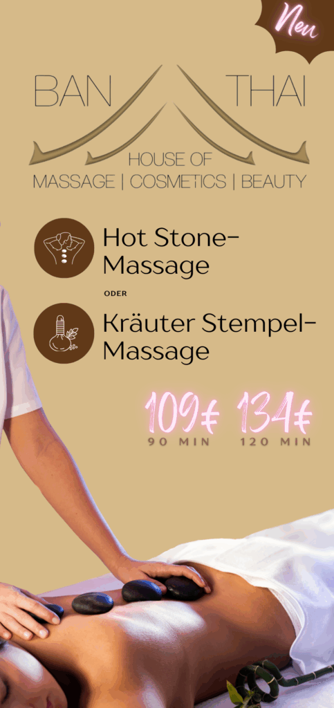 Entfliehen Sie dem Alltag und entspannen Sie sich in unseren Räumen bei traditionelle Massagen um Ihr ganzheitliches Wohlbefinden zu steigern. Alle Massagen sind auch als Partner-Massagen oder als Party-Massagen (mehrere Personen) möglich.